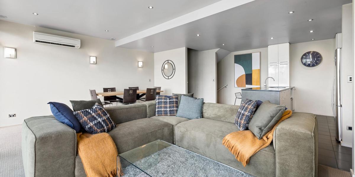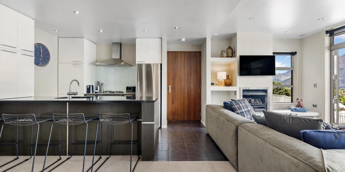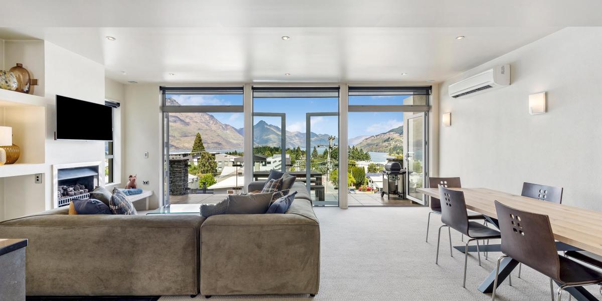 The open-plan lounge and dining room create an inviting space, adorned with contemporary artwork and luxurious finishings handpicked by the Kiwi owners. With three spacious bedrooms, each featuring an en-suite bathroom, this luxury villa in central Queenstown is perfect for a family retreat or a getaway with friends. Two of the three beds separate into single beds, offering up to five beds in total. The twin sets of patio doors open onto a generous private balcony with a BBQ, providing the ideal spot to soak in the breathtaking views and the vibrant energy of Queenstown.