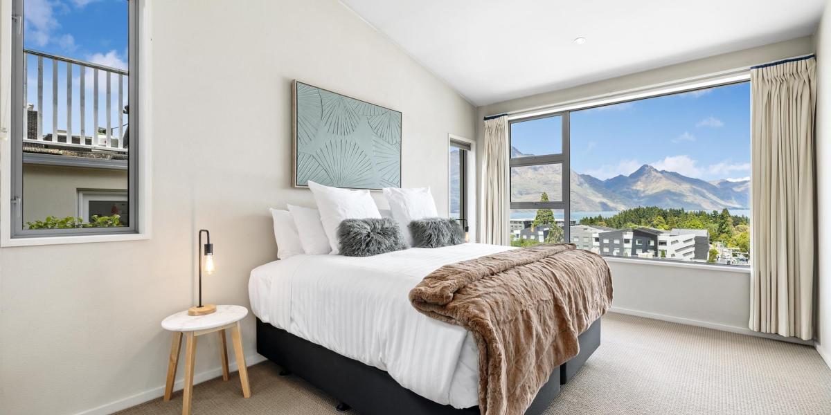 Perched on the lower slopes of Queenstown Hill, Vailmont Villa offers breathtaking panoramic views of Queenstown Bay and the downtown area. Whether you’re lounging on the private balcony or relaxing in the spacious interiors, you’ll be immersed in the beauty of New Zealand’s remarkable landscapes.